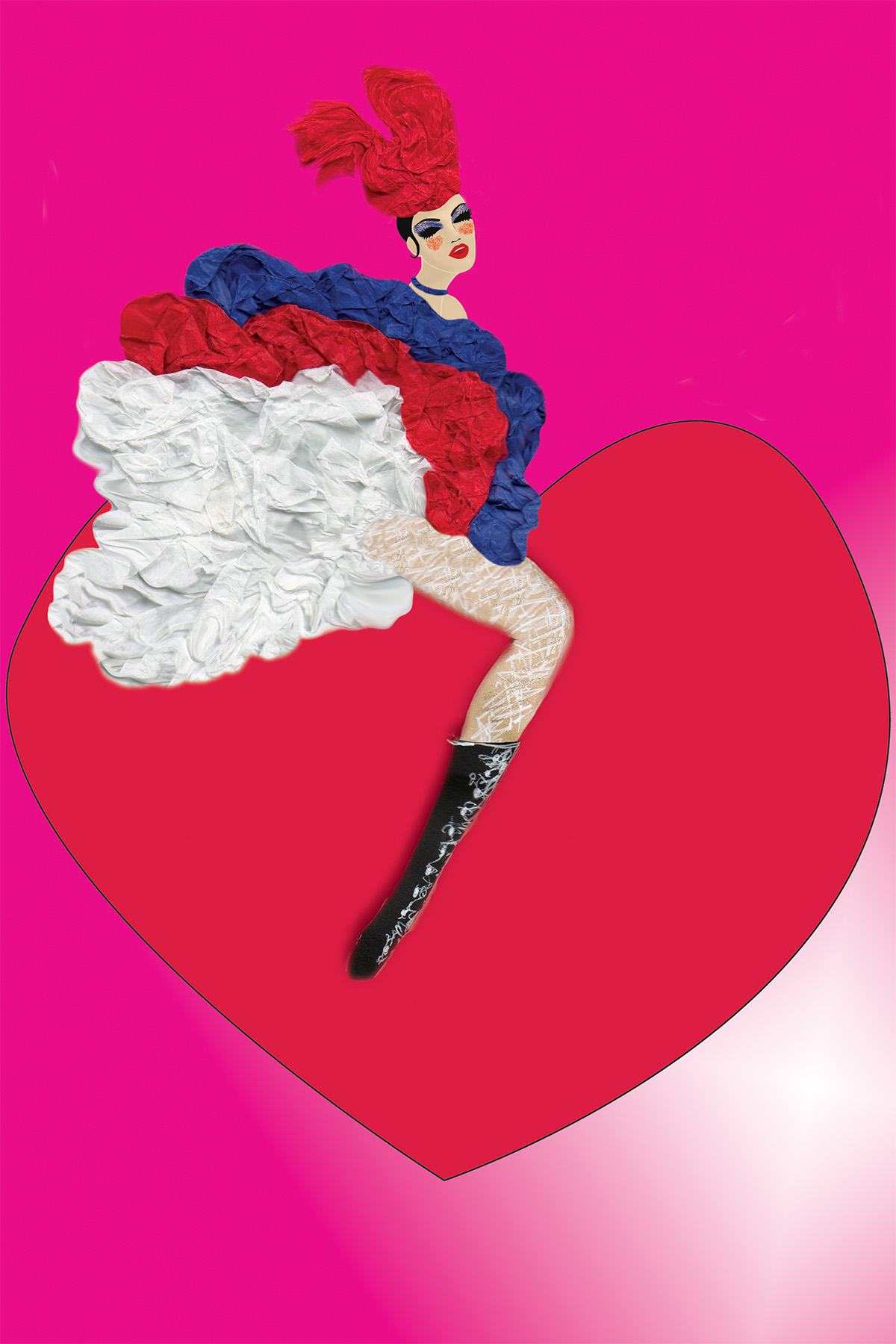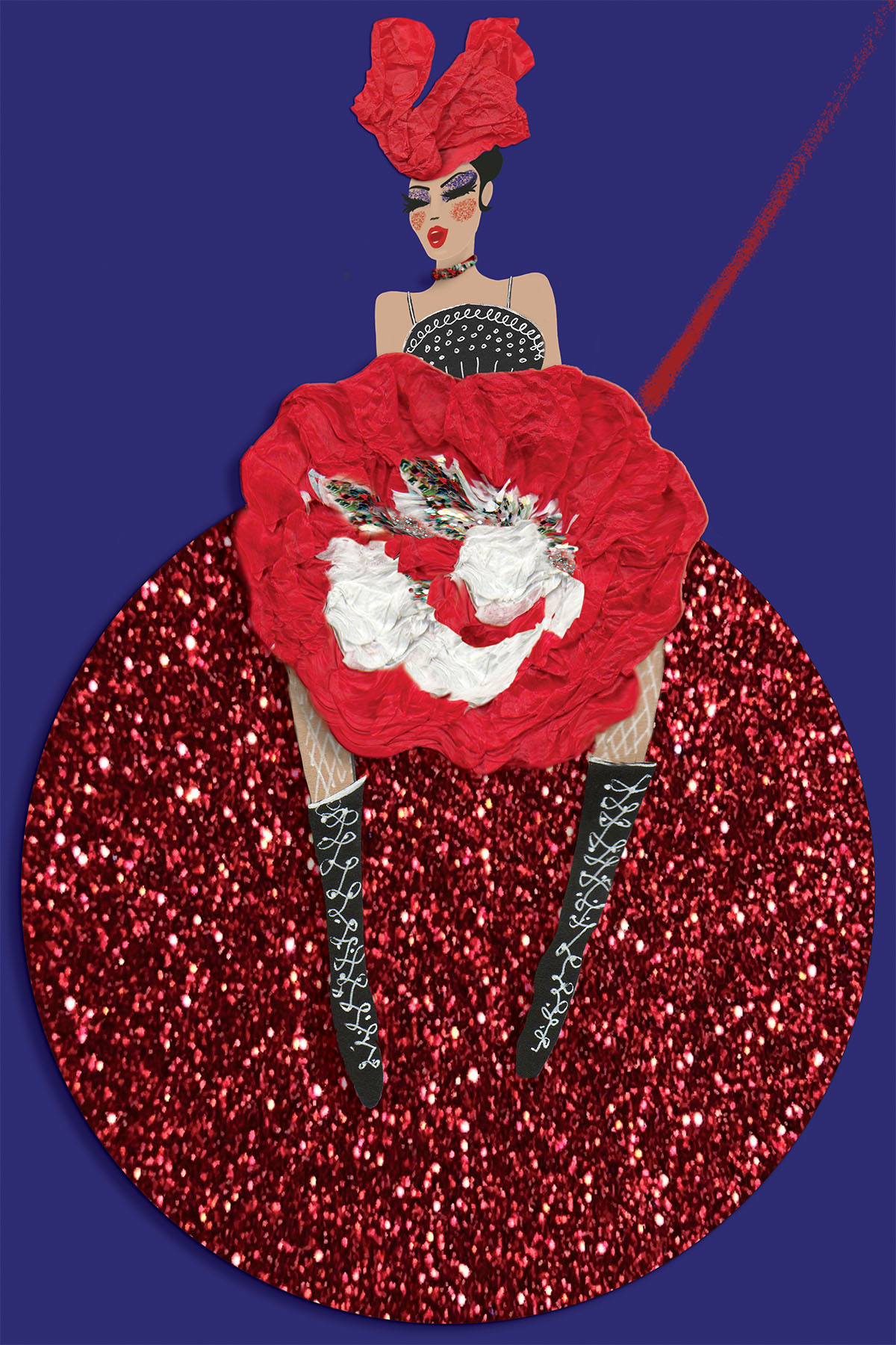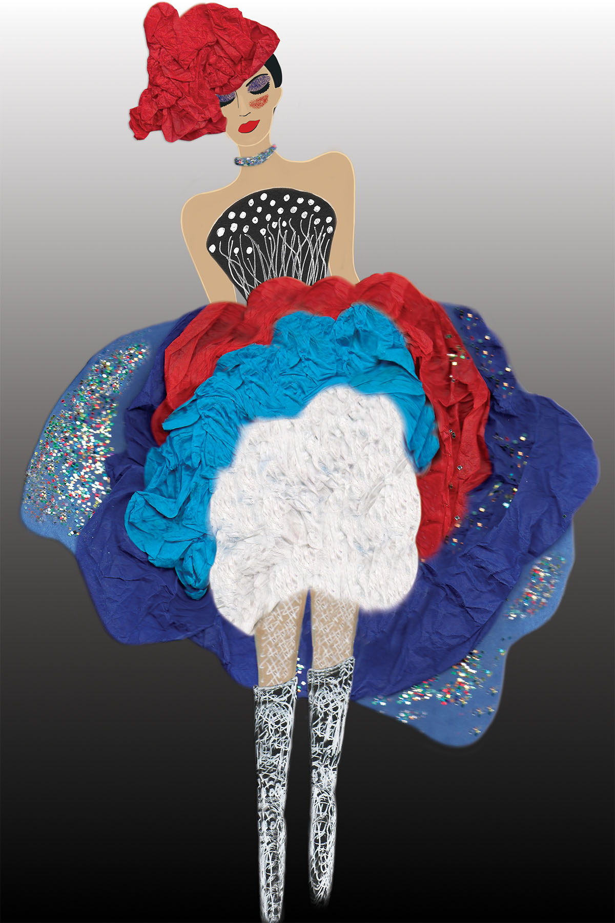 La Cancan by Nathalie Boyer - Flamboyant Cancan Dancer in Paris - Paper Art -